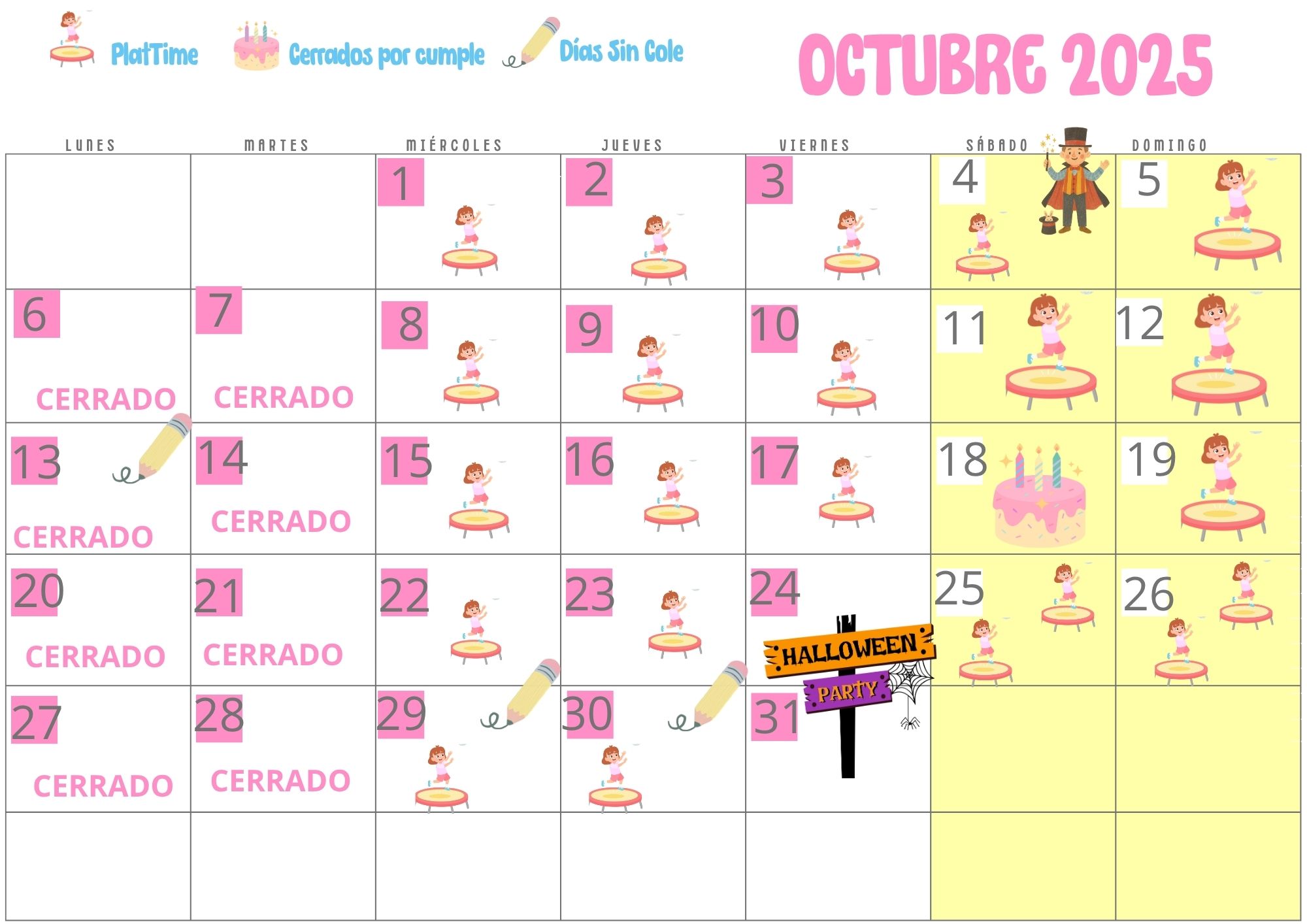 Revisa nuestro calendario antes de venir a jugar y si quieres más información para celebrar un cumple, rellena el formulario de contacto.